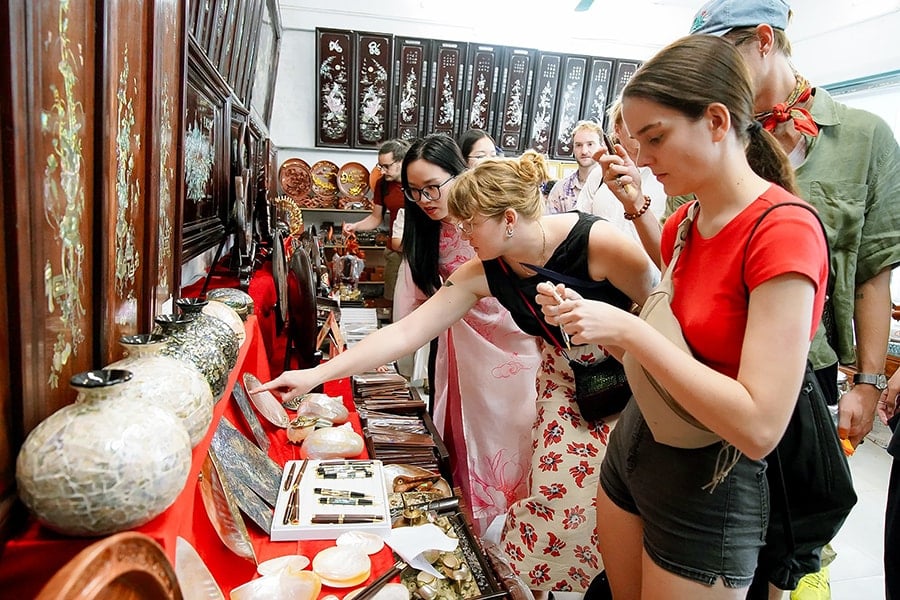 Theo ông Chi, xã đang chỉ đạo xây dựng các bộ video, website, album ảnh và nâng cấp phòng bảo tàng, không gian trưng bày sản phẩm nghệ nhân. Các điểm khảo sát tại hộ sản xuất có kỹ thuật cao được đưa vào chương trình đón khách. Hoạt động này không chỉ quảng bá sản phẩm mà còn góp phần hình thành tuyến du lịch làng nghề hoàn chỉnh gồm may comple Vân Từ, khảm trai sơn mài Chuyên Mỹ, giày da Phú Yên và đồ gỗ dân dụng Tân Dân. Đây là hướng mở giúp gia tăng giá trị cho sản phẩm OCOP, phát triển kinh tế văn hóa địa phương và tạo thêm việc làm.